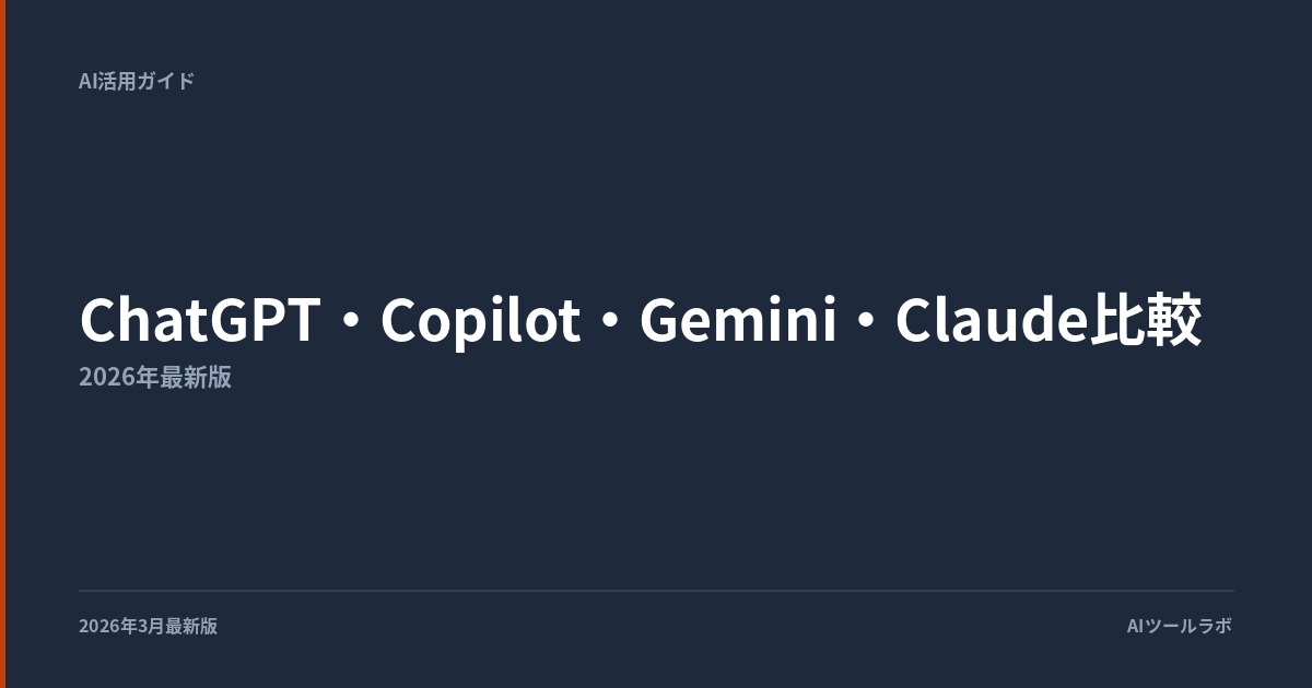 正直なところ、世の中には数百のAIツールがあります。ただ、「本当に仕事や創作に使える」という基準で絞ると、この4つに集約されます。検索結果からも、2026年のAI比較記事ではほぼ確実にこの4つが取り上げられています。